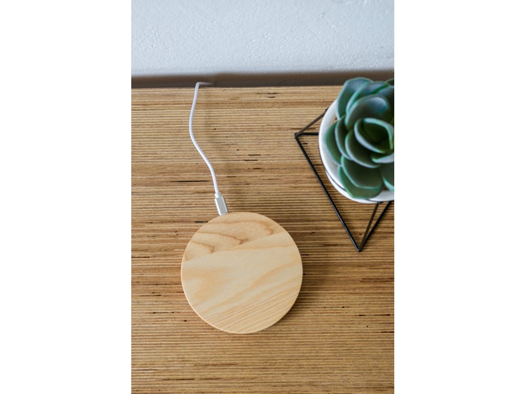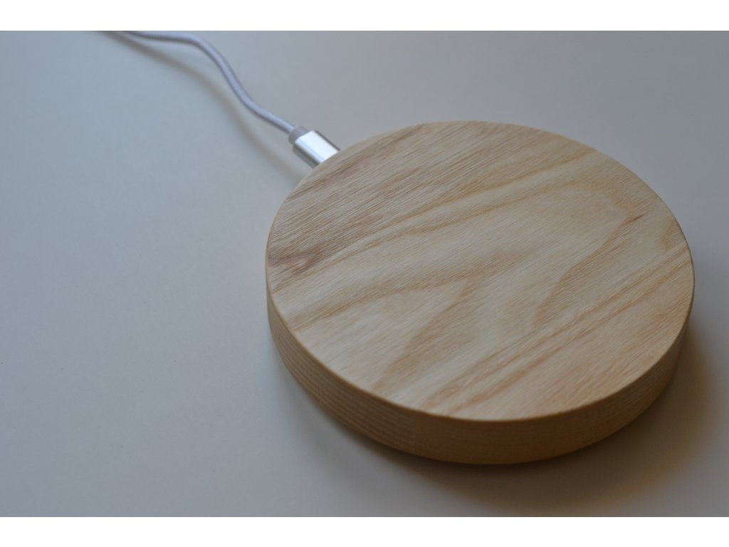 Dřevěná bezdrátová nabíječka - kulatá jasan